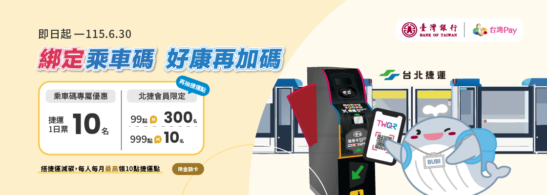 協辦單位:臺灣銀行股份有限公司 - 如有活動相關問題,請洽台北捷運客服專線:(02) 25363001轉9。